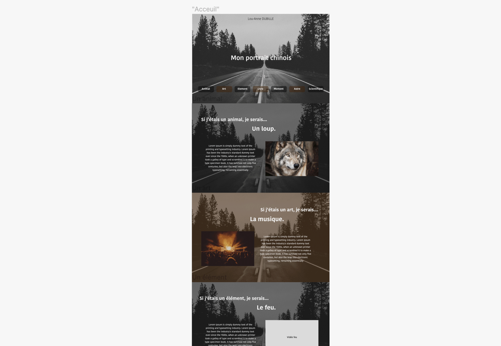 En première année de BUT, nous avons réalisé un portrait chinois sous forme de site afin de nous présenter de façon unique. Nous avions certaines contraintes, notamment de faire un formulaire pour que les visiteurs ajoutent une analogie.